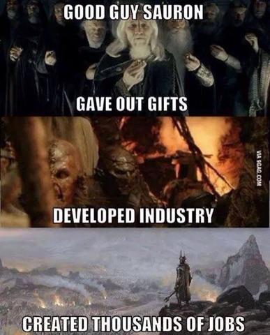 “For my part, I consider that it will be found much better by all Parties to leave the past to history, especially as I propose to write that history.” – Winston ChurchillHistory is written by the victors, so it is said, and orcs are very much Middle-earth’s losers. Merry and Pippin’s capture by orcs, and Sam’s interactions with them at Cirith Ungol, provide a remarkable glimpse into the orc psyche. Far from being brain-dead, useless servants as can often be the caricature, they are shown to be intelligent and thoughtful (albeit still probably misguided, if not outright nasty). This image provides an amusing example of how a history written from the perspective of orcs might look.
